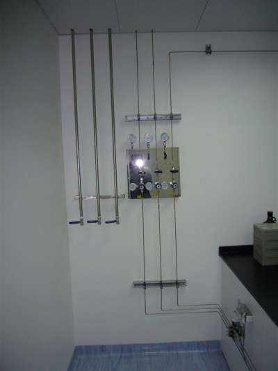 在某些情況下,當(dāng)?shù)叵酪?guī)范建議甚至要求將主要的氣體源如鋼瓶、杜瓦瓶和液體儲槽放置在工作區(qū)外的指定區(qū)域,然后將氣體通過管道系統(tǒng)輸送至廠房內(nèi),并可通過安裝在工作臺上的使用點(diǎn)二級減壓器方便地調(diào)節(jié)壓力和流量。